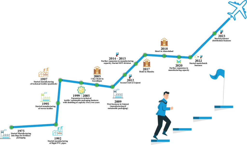 Established in 1975, our journey began with jute bag manufacturing, setting the stage for a lasting commitment to industrial packaging. In 1997, we expanded into plastic packaging with our Gorakhpur facility. By 2005, we entered the hospitality sector, inaugurating a 5 star hotel in Gorakhpur.